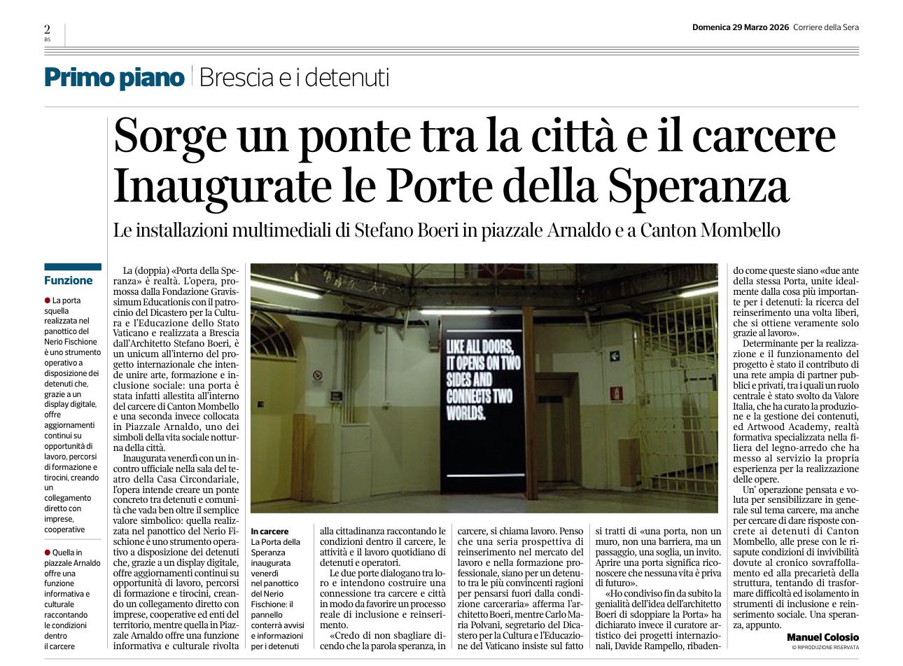 PORTE DELLA SPERANZA: Inaugurata la prima Porta della Speranza firmata da Michele De Lucchi