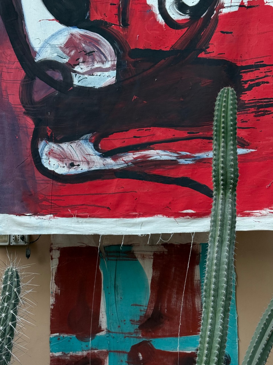 Dirigo un pensiero di profonda ammirazione e gratitudine a Vivian Suter e alla sua coraggiosa visione artistica, che rovescia e trasforma le sonnambule categorie dominanti. La sua opera ci ricorda che ciò che ci connette alla natura è un legame indissociabile, è il fondamento del nostro essere nel mondo, un legame che non può essere tradito senza tradire noi stessi. Universalmente, esiste vita, perché esistono sistemi collaborativi: siamo continuamente il risultato di scambi, negoziazioni e sogni condivisi da sviluppare in co-autorialità