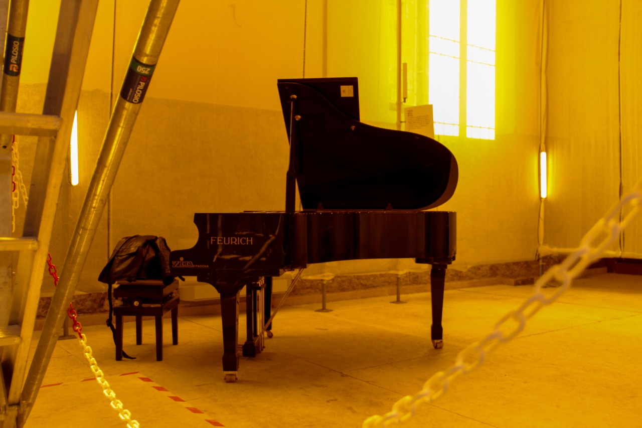 Inoltre, grazie al sostegno del Conservatorio “Benedetto Marcello”, all’interno del Padiglione sono stati messi a disposizione strumenti musicali, tra cui pianoforti, xilofoni e chitarre, per chiunque volesse suonarli. L’idea sottostante è che quando gli ambienti si riempiono di musica, il visitatore non può fare altro che mettersi in ascolto, prestando attenzione a ciò che il musicista sta condividendo di sé, alla materia che lo circonda e alla storia che essa racconta. Dopo tutto il modo migliore per prendersi cura e conservare un edificio è abitarlo, mantenerlo in vita.