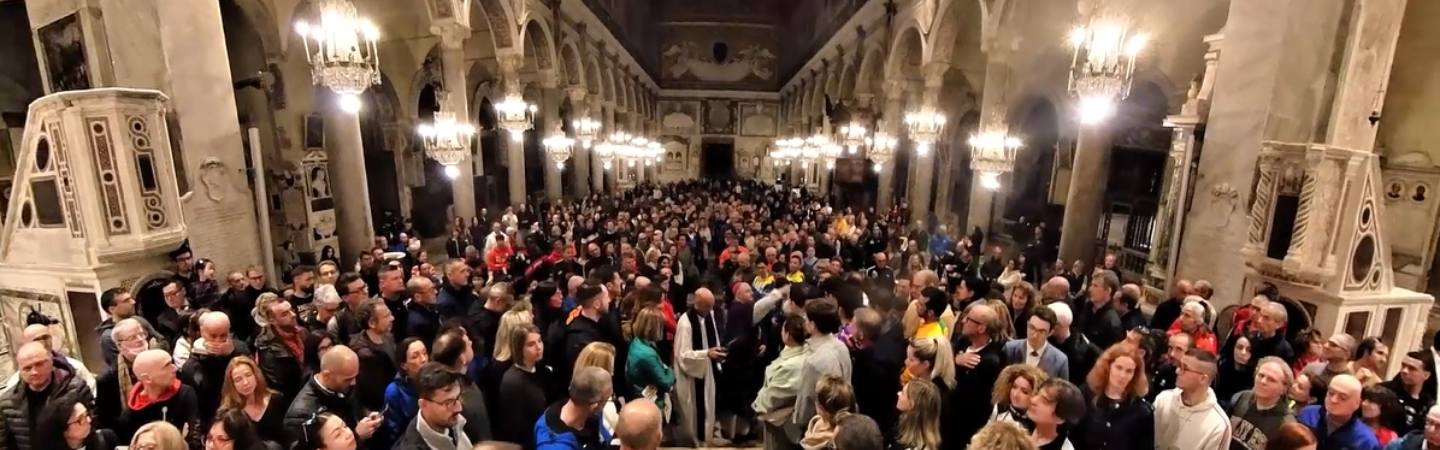 L'arcivescovo Carlo Maria Polvani, segretario del Dicastero per la Cultura e l'Educazione a cui il Papa ha affidato la cura dello sport nella Costituzione Apostolica Praedicate Evangelium, ha presieduto la Messa all'Ara Coeli. Erano presenti molti sacerdoti della maratona.