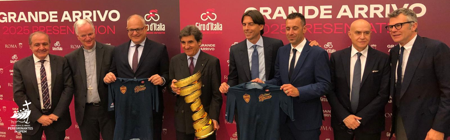 Un altro motivo di questo passaggio è la celebrazione del Giubileo della Speranza. Tra tutti gli sport esistenti, il ciclismo è caratterizzato da quattro elementi: è probabilmente uno degli sport più impegnativi dal punto di vista fisico; è uno sport che si svolge “della porta accanto”; è uno sport che ci coinvolge all’interno dei paesaggi della natura; ed è uno sport che permette al pubblico di essere, in modo gratuito, molto vicino agli atleti. Con ciò, la Chiesa vuole trasmettere questo messaggio: lo sport ha anche una responsabilità sociale. E una delle funzioni principali dello sport è quella di essere un segno di speranza per l'umanità, in quanto areopago di pace, opportunità, rispetto, tolleranza e integrazione. Avendo una grande visibilità, lo sport ha anche una grande responsabilità: quella di ispirare una società a essere più umana. Concludendo, ha citato le parole del nostro caro Papa Francesco: «Lo sport è di tutti e per tutti: è un diritto. Lo sport è un sempre nuovo Cantico delle creature» (cfr. Prefazione al libro “Giochi di Pace", 8).