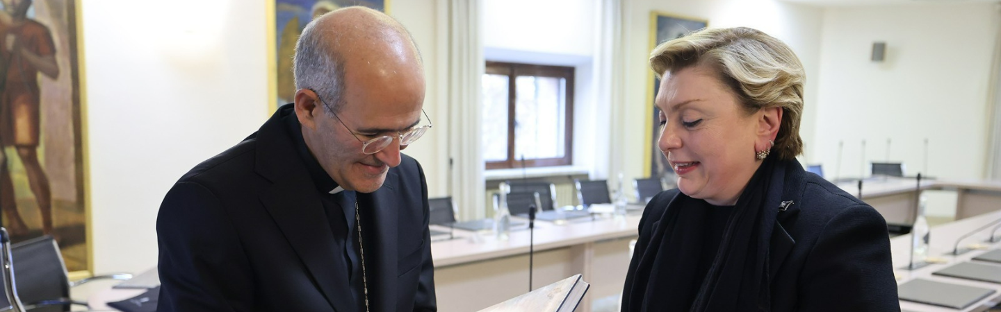 Nella mattinata del 24 novembre, il Cardinale José Tolentino de Mendonça, assieme a S.E. Mons. Carlo Maria Polvani - Segretario del Dicastero, ha ricevuto la visita cordiale della Sig. Tinatin Rukhadze, Ministro della Cultura della Georgia, accompagnata dal Sig. David Mekvabishvili , Ambasciatore di Georgia presso la Santa Sede , il Sig. Zurab Bakuradze, Capo Dipartimento Relazioni Internazionali del MInistero della Cultura e la Sig.ra Irina Sanashvili, Interprete dall'Ambasciata di Georgia presso la Santa Sede.