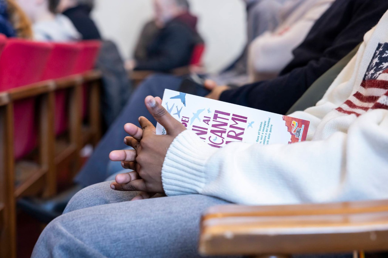 “I bambini ci indicano la strada per fabbricare vita”, ha affermato Anna Pozzi, mentre Cristina Castelli si è soffermata sull’importanza dei disegni: “Papa Francesco ci ha insegnato che sono proprio i più piccoli a porre le domande più grandi e difficili. Con questo lavoro abbiamo cercato di creare un’oasi di pace, un laboratorio di ricostruzione in cui il disegno invita all’azione, perché aiuta il bambino a essere attivo e a esprimere le proprie emozioni, liberandosi dall’inibizione che l’esperienza della guerra provoca, condividendo il suo dolore. Per elaborare un trauma così – ha proseguito Cristina Castelli - ci vuole tempo: il disegno è uno strumento prezioso perché aiuta a fare memoria e a superare il trauma”. Don Alliata ha citato alcuni passi dei celebri: “La guerra delle campane” di Gianni Rodari e “Il sergente nella neve” di Mario Rigoni Stern, rimarcando come “ognuno di noi, ogni giorno, possa nel suo piccolo contribuire a fare la pace o meno”.